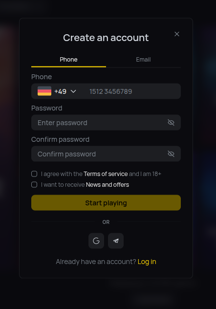 Registration at 10BLACK is quick and involves one step: Create an account by providing: 1. Phone Number Password Once your account is set up, you can deposit funds and start playing for real money. Log in using your username and password.