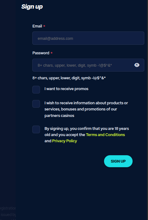 Registration at BetBeast is quick and involves three steps: Create an account by providing: 1. Email address Password 2. First Name Last Name Date of Birth 3. City Address Phone number Once your account is set up, you can deposit funds and start playing for real money. Log in using your username and password.