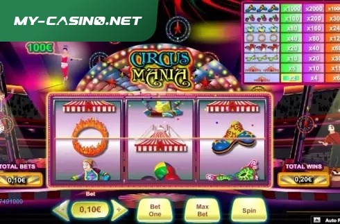 This video slot, Circus Mania, is a 3x1 game with 1 betway. It has an RTP of 93.5% and LOW-MED variance. The main feature is a Multiplier.
