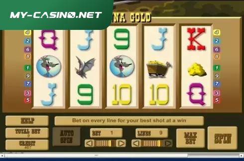 This slot game has 5 reels and nine paylines, featuring a bonus game with extra payouts. The game includes a substitute symbol. The Goanna symbol substitutes for all symbols except the scattered Nugget.