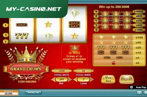 Video Slot ’Grand Crown’ is a 3*3 game with 5 betways. Slot has RTP=96% and MED level variance. Main game features are: Wild, Multiplier.