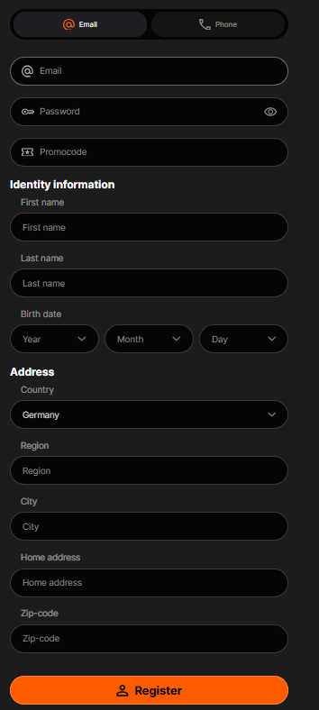 Registration at Hertzbetz Casino is quick and involves one step: Create an account by providing: 1. Email address Password Promocode (if you have one) Name Surname Date of birth Gender Country Region City Address Zip-code