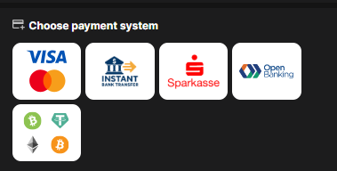 Players can fund their accounts using a variety of popular payment methods. Deposits may also qualify for casino bonuses. Payment Methods: Skrill, Neteller, PaysafeCard, VISA, Mastercard, Bitcoin (BTC), Bank transfer, Litecoin (LTC), N26, Nem, Rapid Transfer, Tron (TRX), Dogecoin (DOGE), Wise, EOS, Revolut, DASH, Solana (SOL), Bitcoin Cash (BCH), AVAX (Avalanche), USD Coin (USDC), Binance Coin (BNB), Ethereum (ETH), Toncoin (TON), Tether (USDT), Polygon (MATIC). Minimum Deposit: 10 EUR Account Currencies: NOK, EUR, USD, AUD, CAD, CHF, CLP, CZK, HUF, NZD, PEN, PLN