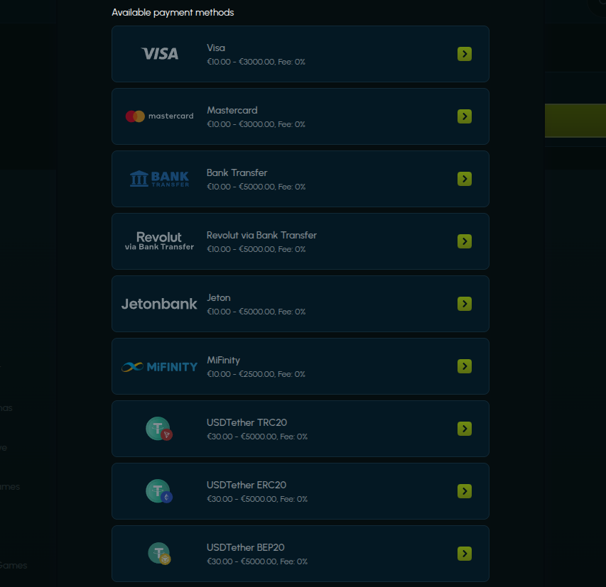 Players can fund their accounts using a variety of popular payment methods. Deposits may also qualify for casino bonuses. Deposit Options: Payment Methods: Skrill, Neteller, PaySafeCard, Visa, Mastercard, Nordea, Postepay, Neosurf, Zimpler, Siru Mobile, Bank Transfer, Op-Pohjola, PIX, Rapid Transfer, Interac, Revolut, Jeton, BLIK, MiFinity, CashtoCode, SticPay, Cardano, Dogecoin, Bitcoin, USD Coin, Tether, Litecoin, Ethereum, BitcoinCash Minimum Deposit: 10 EUR Account Currencies: NOK, EUR, USD, AUD, BRL, CAD, CHF, CLP, CZK, HUF, NZD, PEN, PLN, SGD